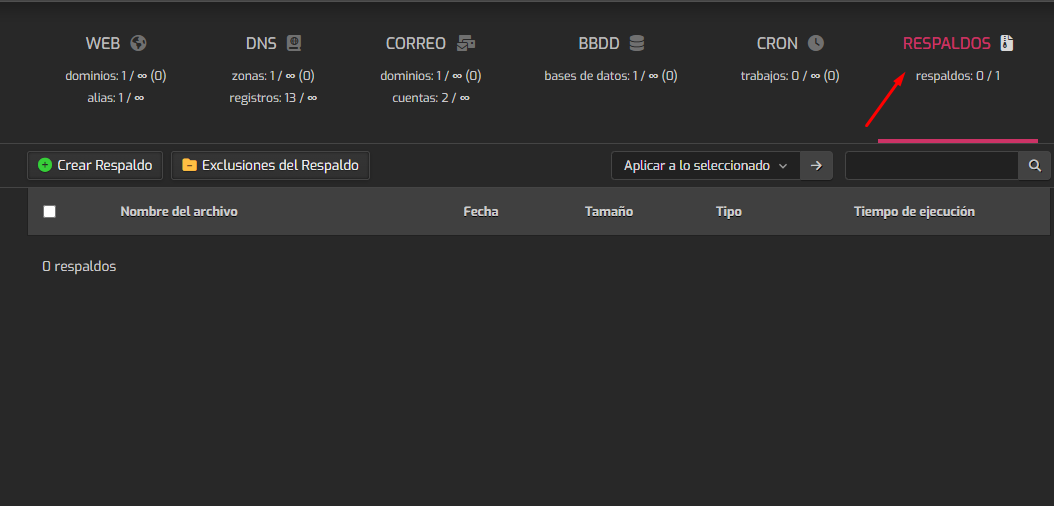2. Haga click en la sección de "Respaldos"